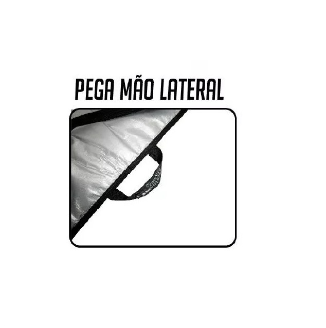 Capa impermeável refletiva para Prancha de Stand Up Paddle, fabricada com material de alta qualidade e resistência, espuma de 4mm, forração do mesmo material da parte externa 1mm cada garantindo 7mm de proteção para sua prancha, bico reforçado e zíper reforçado. Proteja sua prancha durante o transporte e armazenagem, possui alça para facilitar o transporte, além disso permite o armazenamento da prancha com as quilhas ainda fixadas e abertura para quilhão.